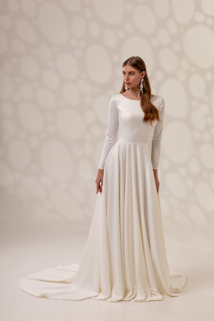 A minimalista menyasszonyi ruhák letisztult vonalakkal és egyszerűséggel tűnnek ki. Ezek a ruhák gyakran mentesek a túlzott díszítésektől, és inkább az anyag minőségére és a szabás tökéletességére helyezik a hangsúlyt.